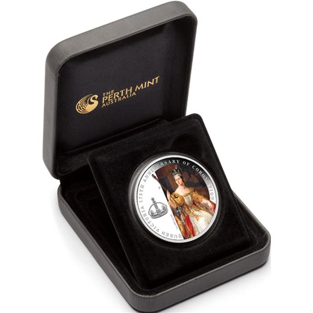 Líc mince zdobí barevný portrét královny Viktorie ke 175. výročí korunovace. Na rubu portrét královny Alžběty II, rok ražby. Mince je vydána jako australské zákonné platidlo s nominální hodnotou 1 AUD