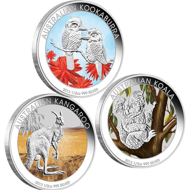 Dárková sada 3ks stříbrných mincí AUSTRALIAN OUTBACK 2013 - 1/2 Oz (Austrálie) kolorovaná edice