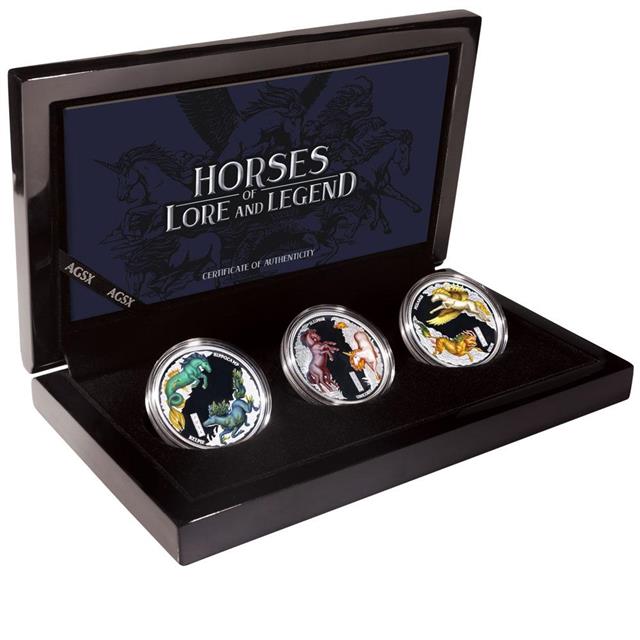 Mincovna Perth Mint s velikým potěšením představuje tuto nádhernou sadu 3 ks stříbrných mincí „Horses of Lore and Legend“ - Koně z lidových tradic a legend. Koně získaly nezastupitelné místo v lidových tradicích a bájných legendách. Jejich příběhy odvahy a pochopení oslovovali a budou i nadále oslovovat celé generace.