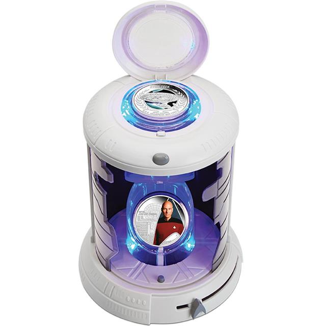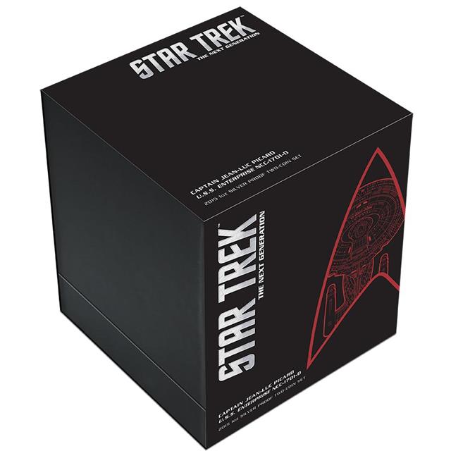 Unikátní série věnována kultovnímu seriálu Star Trek. Australská mincovna Perth Mint Vám představuje druhou unikátní sadu dvou stříbrných mincí ze série jenž je věnována seriálu Star Trek. Motivem mincí z této série The Next Generation je kapitán Jean-Luc Picard ( herec Patrick Stewart) a vesmírná loď USS Enterprise NCC-1701- D. Mince jsou kolorované z ryzího stříbra 999/1000, 1 oz, v kvalitě Proof a jsou uloženy v originálním exkluzivním obalu, jehož vzhled byl inspirován Star Trek transportérem. Po otevření víka se modré části okolo mincí rozsvítí.