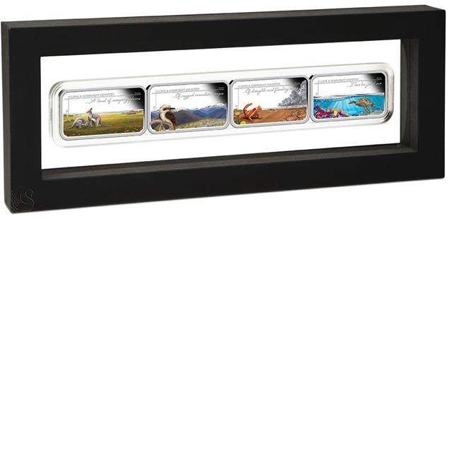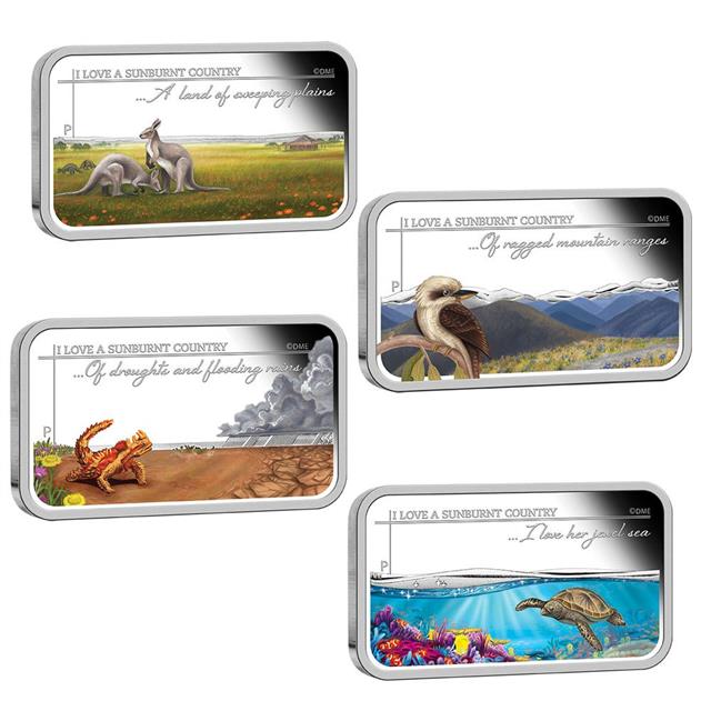 Tento úžasný set obsahuje čtyři mince obdélníkového tvaru zobrazující krásy Australského kontinentu. Předlohou mincím byla báseň My Country australské autorky Dorothea Mackellar. Každá mince zobrazuje jeden verš básně.