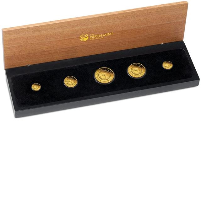 Mincovna The Perth Mint Vám představuje nádhernou sběratelskou sadu 5ti zlatých mincí z mimořádné limitované edice vydané při příležitosti 25 let od doby, kdy v roce 1989 byl poprvé uveden program zlatých mincí s motivem klokana, příhodně pojmenovaný Australský klokan a ihned se zařadil k nejvyhledávanějším zlatým mincím na světě.