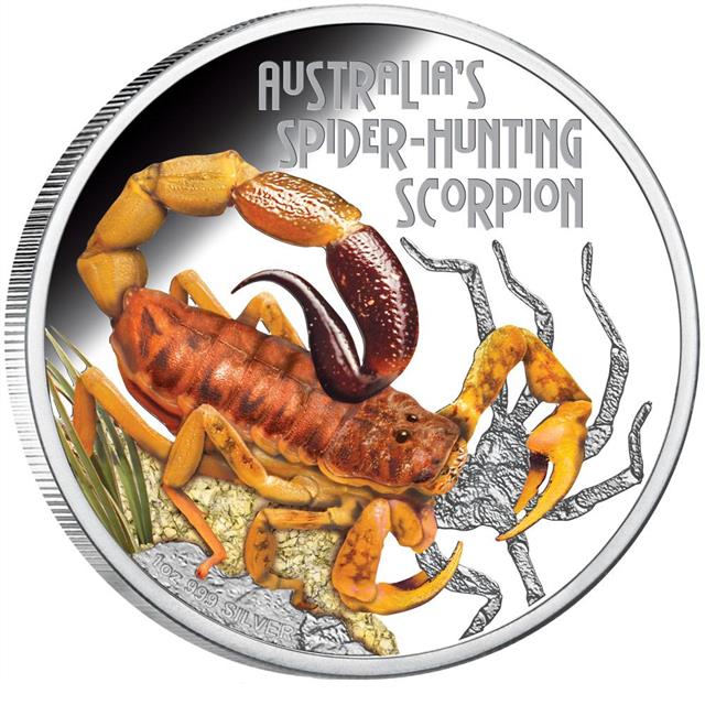 Spider-Hunting Scorpion 2014 1oz je již devátou mincí ze série smrtící a nebezpeční.