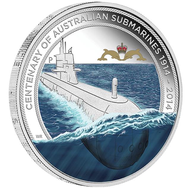 Australská mincovna Perth Mint při příležitosti 100 let Australského královského ponorkového námořnictva vydává nádhernou pamětní minci "Stoleté výročí Australských ponorek" 2014 1oz (Centenary of Australian Submarines 2014 1oz Silver Proof Coin Replica Badge Set).