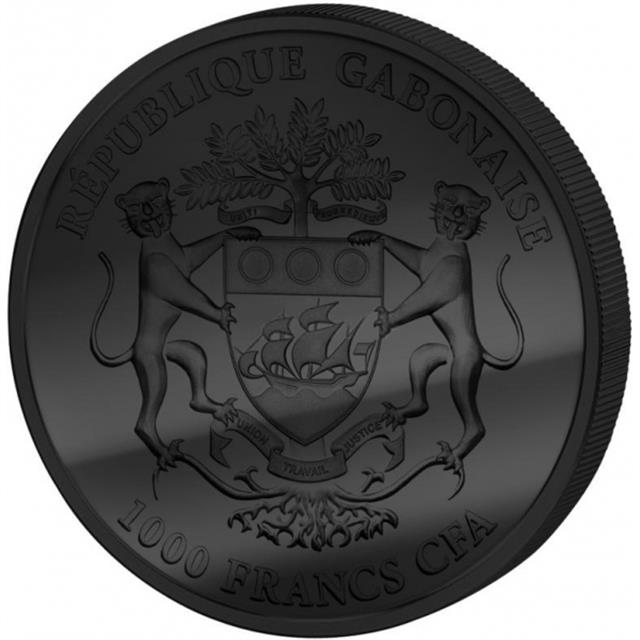 Líc mince zobrazuje zlacenou Antilopu skákavou, na stříbrné minci potažené rutheniem. Zlacená nominální hodnota. Na rubu mince je zobrazen erb Gabonské republiky a rok vydání.