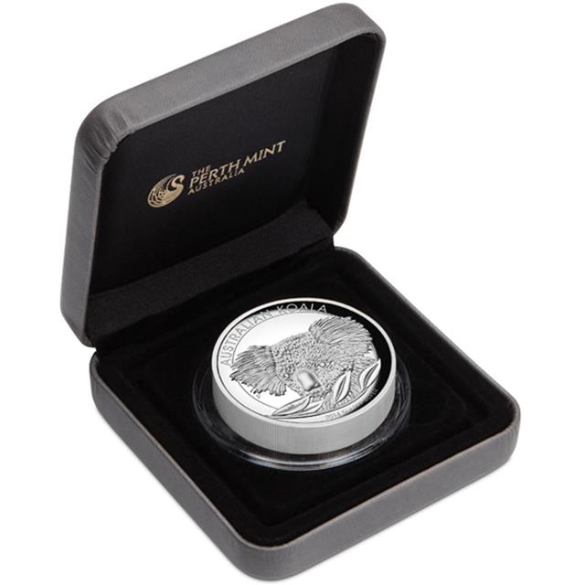 Stříbrná mince Koala 2014 5oz Proof High Relief- mince s hlubokou ražbou se zvýrazněním detailu.
