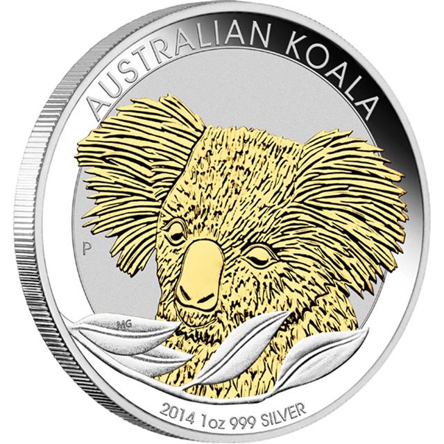 Stříbrná mince Koala 2014 1 Oz - pozlacená: