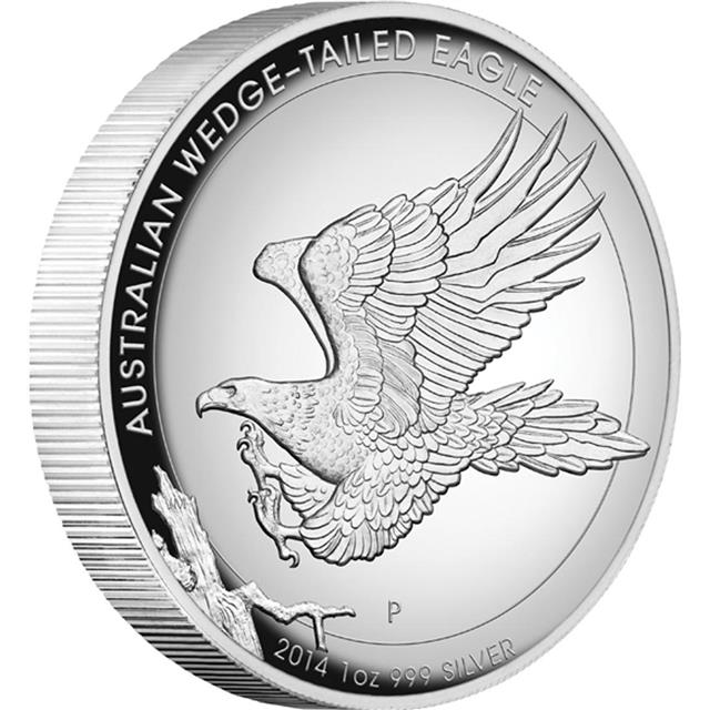 Motivem této mince je majestátný orel, který se chystá na přistání do větví starého stromu spolu s tradiční značkou mincovny The Perth Mint "P" a nápisem "Australian Wedge-Tailed Eagle 2014".Na rubu portrét královny Alžběty II, měnové označení a rok ražby. Mince je vydána jako australské zákonné platidlo s nominální hodnotou 1 AUD.