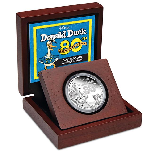 Mincovna Perth Mint Vám představuje další minci ze serie Disney - Kačer Donald (ang. Donald Duck), jenž je vydávána k 80. výročí zrození této animované postavičky. Kačer Donald je hrdina animovaných příběhů a komiksů vytvořený v roce 1934 režisérem Waltem Disneyem. Kačer Donald se poprvé objevil ve filmu The Wise Little Hen z cyklu Silly Symphonies 9. června 1934. Poté se začal objevovat v dalších animovaných příbězích, zejména po boku Myšáka Mickeye, Goofyho a psa Pluta.S hlasem Kačera Donalda je spojen herec Clarence Nash, který ho daboval až do roku 1985.V roce 2004 byla umístěna hvězda Kačera Donalda na chodníku slávy v Hollywoodu.