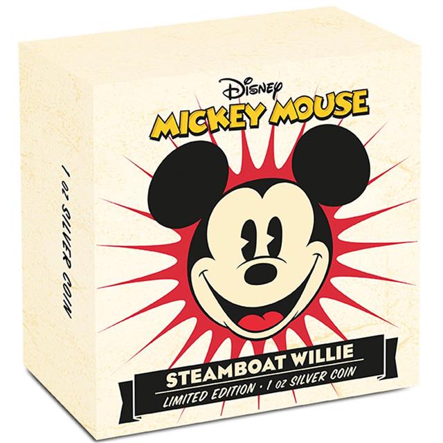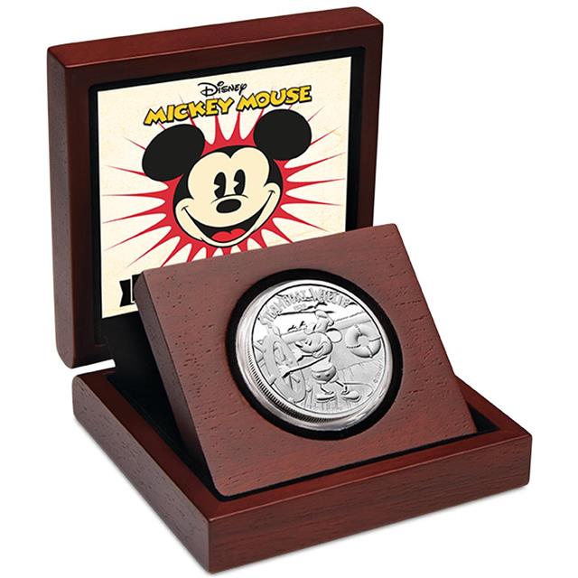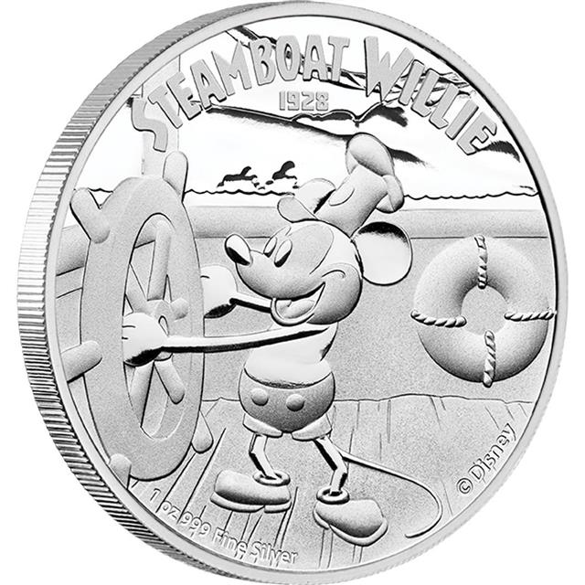 Motivem této stříbrné mince je myšák Mickey stojicí u kormidla. Líc mince zdobí podobizna Jejího Veličenstva královny Alžběty II od Ian Rank-Broadley.