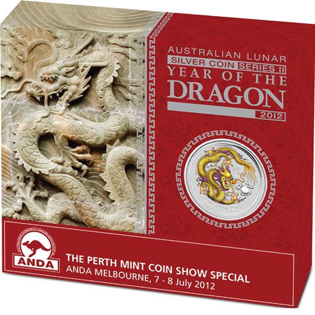 Mince je ražena v australské mincovně The Perth Mint z 99,9% čistého stříbra v kvalitě Proof. Rub mince zobrazuje kolorovaného draka. Čínský znak pro "draka" a nápis "rok draka" se objevují také v provedení s tradiční značkou mincovny The Perth Mint "P". Vydáno jako australské zákonné platidlo. Líc mince zdobí podobizna Jejího Veličenstva královny Alžběty II od Ian Rank-Broadley.