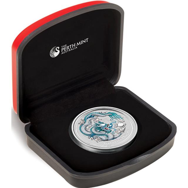 Mince je ražena v australské mincovně The Perth Mint z 99,9% čistého stříbra v kvalitě Proof. Rub mince zobrazuje kolorovaného draka. Čínský znak pro "draka" a nápis "rok draka" se objevují také v provedení s tradiční značkou mincovny The Perth Mint "P". Vydáno jako australské zákonné platidlo. Líc mince zdobí podobizna Jejího Veličenstva královny Alžběty II od Ian Rank-Broadley.