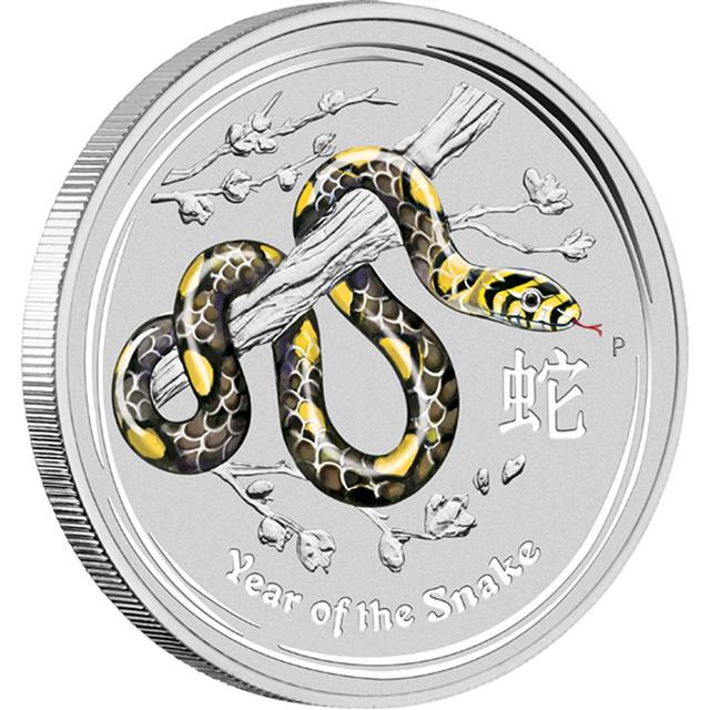Mince je ražena v australské m incovně The Perth Mint z 99,9% čistého stříbra v kvalitě specimen. Rub mince zobrazuje kolorovaného žlutočerného hada stočeného kolem větve stromu s černým diamantem ve viditelném oku. Čínský znak pro "hada" a nápis "rok hada" se objevují také v provedení s tradiční značkou mincovny The Perth Mint "P". Vydáno jako australské zákonné platidlo. Líc mince zdobí podobizna Jejího Veličenstva královny Alžběty II od Ian Rank-Broadley.