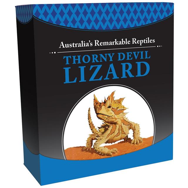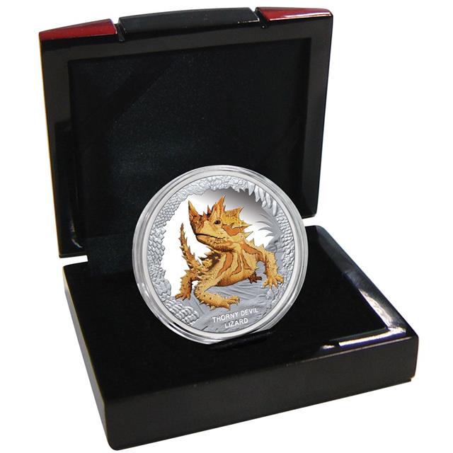 Na líci této mince je znázorněn Moloch Ostnitý spolu s nápisy "Thorny Devil Lizard".