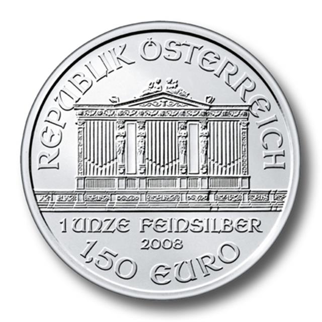 Po velikém úspěchu se zlatým „WIENER PHILHARMONIKER“ vydává mincovna tuto minci i ve stříbře. (První vydání 1. února 2008)a to pouze v 1 unci z ryzího stříbra. Zadní straně mince (viz obrázek vlevo nahoře) dominují varhany ve Zlatém sále Vídeňské filharmonie. Nominální hodnota 1,50 € dávají této minci oficiální status zákonem uznané měny příslušného státu, což ji dělá oficiálním platidlem ve všech státech, které používají €uro jako státní měnu. Dále na přední straně mince jsou v zastoupení různé nástroje filharmonie. Více informací o tomto výrobku naleznete na internetové prezentaci MÜNZE Österreich AG.