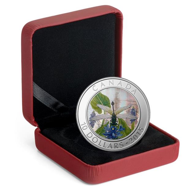 Královská kanadská mincovna Vám představuje nádhernou unikátní kolorovanou minci. Motivem mince je vážka nad vodní hladinou. Tato mince je unikátní tím, že při výrobě v Královské kanadské mincovně byla použíita technologie obrázku vážky na trojrozměrném hologramu.