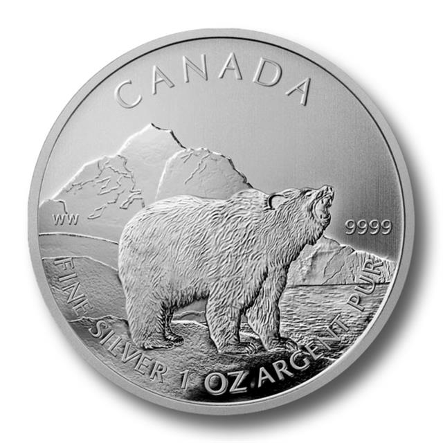 Od roku 2011 razí kanadská mincovna Royal Canadian Mint „ Wildlife“ série s charakteristickými motivy divoké zvěře. Každý rok razí vždy dva motivy z této „ Wildlife“ série v nákladu 1 milion exemplářů. Každý design líčí jiné zvíře v jeho přirozeném prostředí. Stejně jako kanadské stříbrné mince Maple Leaf mají i tyto „ Wildlife mince“ na svém rubu portrét královny Alžběty II, rok ražby a nominální hodnotu. Na líci všech „ Wildlife mincí“, pod vyobrazením zvířete, je vyražena ryzost a váha. Jako první ze série „ Wildlife“ se v roce 2011 objevila mince s motivem „ Wildlife“ vlka a následoval „ Wildlife“ grizzly. Jako motivy roku 2012 byly vybrány „ Wildlife“ puma a „ Wildlife“ los severoamerický. Motivy pro rok 2013 jsou „ Wildlife“ antilopa a „ Wildlife“ bizon. Tato „ Wildlife“ série od roku 2011 do 2013 v sobě obsahuje šest typických kanadských motivů zvířat. Jako druhým motivem ze série je právě motiv grizzlyho. Grizzly je líčen s jeho mocným řevem na břehu vodního útvaru v Arktidě. Příznivá cena spolu s atraktivním designem činí mince zajímavé jak pro investory tak sběratele. Dostupná je i celá série šesti mincí " Wildlife"