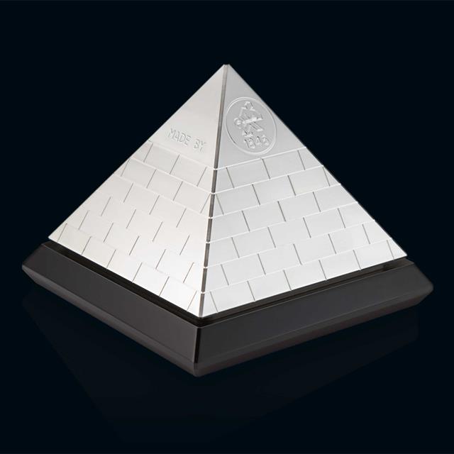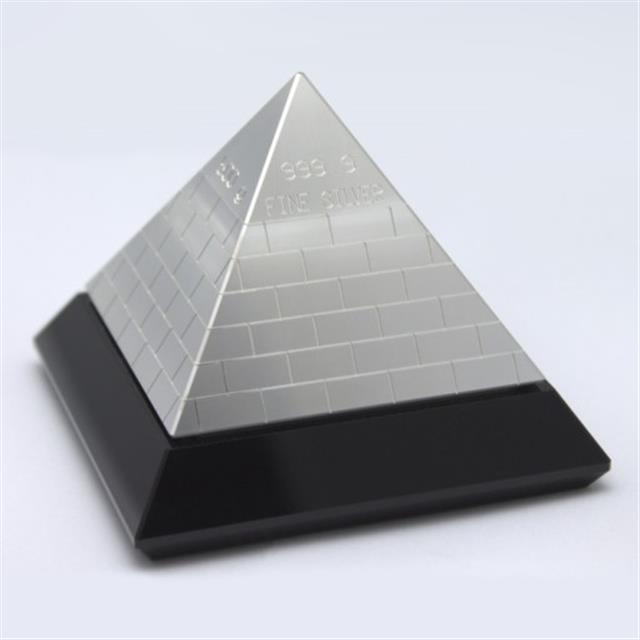 Pyramidu z ryzího stíbra 999/1000 vyrábí nejstarší německá rafinérie Heimerle+Meule, která funguje od roku 1845. Její produkty jsou certifikovány jako Good delivery na londýnské burze kovů, LBMA. Pyramida je vhodná též jako prestižní dárek. Lze ji doplnit o individuální potisk, logo nebo znak.