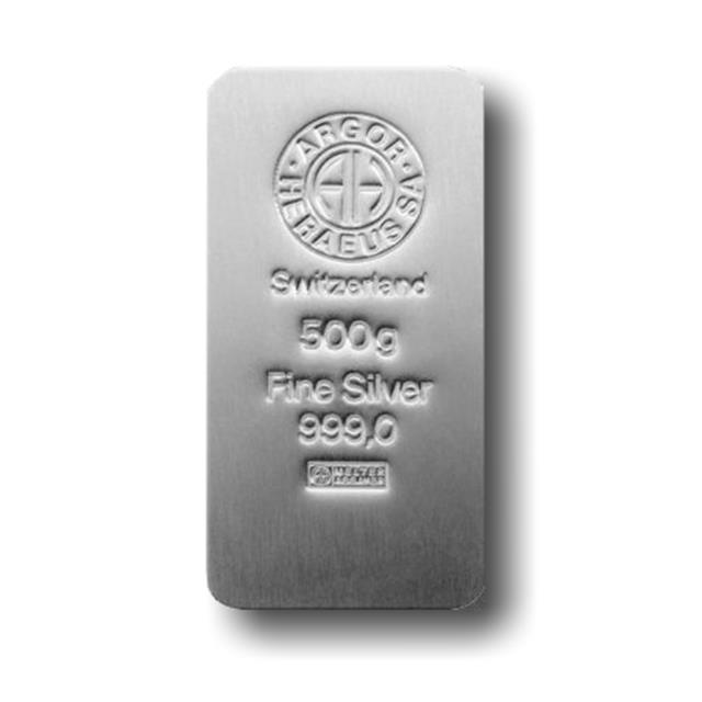 500g stříbrný ražený slitek je třetí největší z šesti slitků vyráběných firmou ARGOR-HERAEUS (20g / 100g / 250g / 500g / 1000g / 5000g). Ke stříbrným slitkům ARGOR-HERAEUS S.A. nevydává certifikát, jsou označeny značkou a puncem rafinéra. Kromě Londýna (London Metal Exchange) jsou slitky ARGOR-HERAEUS S.A. obchodovány na třech dalších burzách cenných kovů - od roku 1974 v New Yorku (New York Mercantile Exchange, COMEX Division), od roku 1982 v Tokyu (The Tokyo Commodity Exchange, TOCOM) a od roku 2005 také v Dubai (Dubai Multi Commodities Centre). Další informace naleznete na internetové prezentaci firmy ARGOR-HERAEUS SA.
