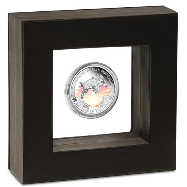 Australská mincovna Perth Mint Vám představuje kolorovanou stříbrnou minci ze série Sydney ANDA Coin Show Special s motivem Rok Kozy 2015 1 oz. Mince je umístěna v moderní vitríně, což umožňuje volný pohled na rub i líc mince. Mince je dodávána v originální ilustrované krabičce spolu s číslovaným certifikátem původu a pravosti.