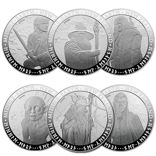 Sada stříbrných pamětních mincí The Hobbit - Silver Coin Set. Na mincích jsou vyobrazeni Bilbo Pytlík (Bilbo Baggins), Gandalf, Thorin Oakenshield, Gollum, Radagast a Elrond spolu s nápisem v angličtině a hobitštině: Středozem - Nový Zéland. Na lícní straně je královna Elizabeth II. Mince jsou vydány ke stejnojmennému filmu Petera Jacksona, natočenému podle románu Hobit od J. R. R. Tolkiena.