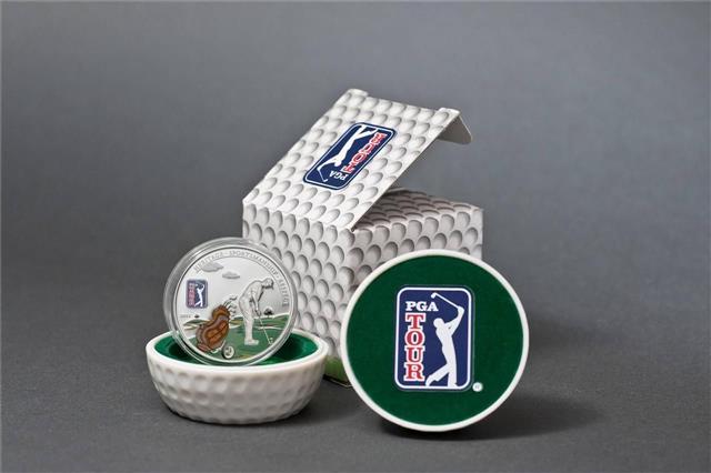 Představujeme Vám perfektní dárek pro všechny milovníky golfu, oficiální stříbrnou minci prestižní golfové PGA TOUR 2014. Jde již o třetí 3D golfovou minci vydanou v řadě. Mince je dodávána v originálním balení v podobě golfového míčku.