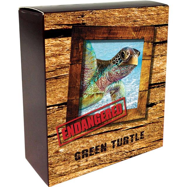 GREEN TURTLE 2014 1OZ SILVER PROOF COIN (zelená želva) ze série ohrožených a vyhynulých