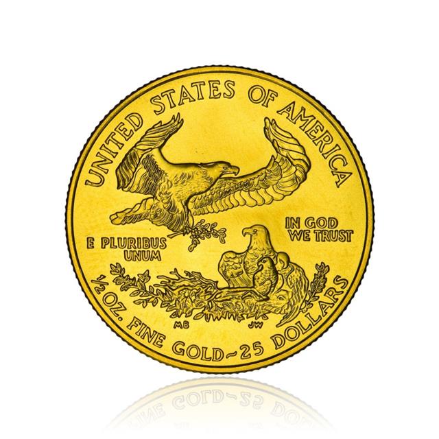 Rub: Orel snášející se do svého hnízda k orlici s mláďaty text "UNITED STATES OF AMERICA E PLURIBUS UNUM IN GOD WE TRUST 1/2 OZ FINE GOLD |