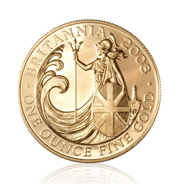 Moderní zlatá mince Britannia se razí od roku 1987 a stala se první evropskou investiční zlatou mincí. Mezi lety 1987 až 2000 se mince razila s motivem na licní straně, kde je vyobrazena postava ženy „Britannia“ v rozevlátém oděvu s helmou a štítem. Britannie – ženský symbol božství z dob římské nadvlády britských ostrovů (43 před letopočtem až cca 440 našeho letopočtu). Od roku 2001 se mění motivy vyobrazení Britannnie. Např. v roce 2001 byl motiv - Britannia se lvem. V letech 2003 a 2005 následovaly vyobrazení – hlava ženské Britannie a sedící Britannia. Autor motivu: P.Nathan. Dokola kolem motivu je vyražen nápis „BRITANNIA“ a nápis označující velikost a ryzost „ONE OUNCE FINE GOLD“.