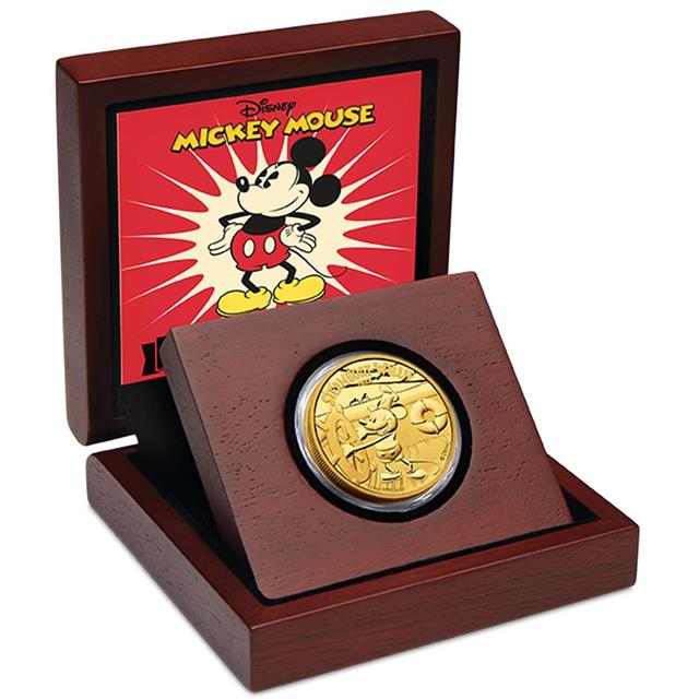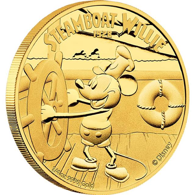 Motivem této zlaté mince je myšák Mickey stojicí u kormidla. Líc mince zdobí podobizna Jejího Veličenstva královny Alžběty II od Ian Rank-Broadley.