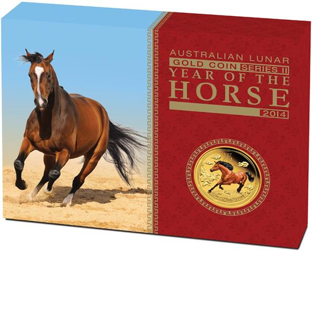 Narodili jste se Vy nebo Vaši blízcí v letech 1918, 1930, 1942, 1954, 1966, 1978, 1990, 2002 a 2014? Potom jste narozeni v lunárním znamení Koně. Využijte ojedinělé možnosti zakoupit sobě či svým blízkým cenný dárek v podobě nádherné zlaté kolorované 1/4oz mince, Australské Lunární Série II - Rok Koně 2014 - kolorované