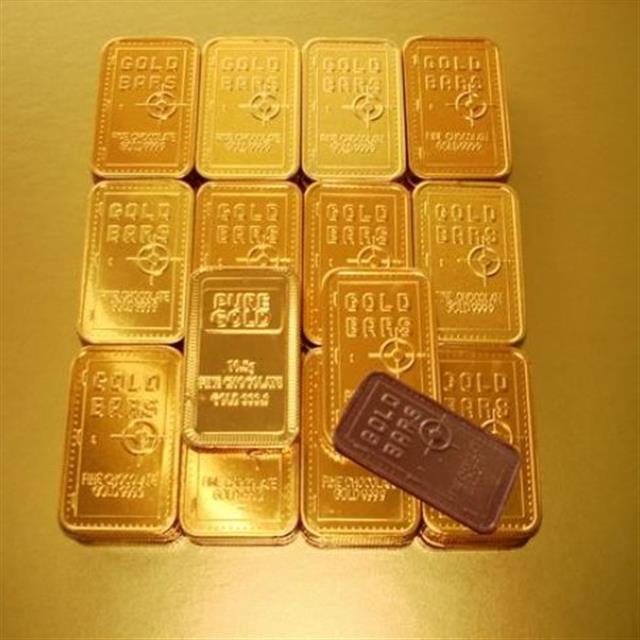 Zlaté cihličky-čokoláda, 108 ks mléčné čokolády<br> Čokoláda v designu zlatých slitků.