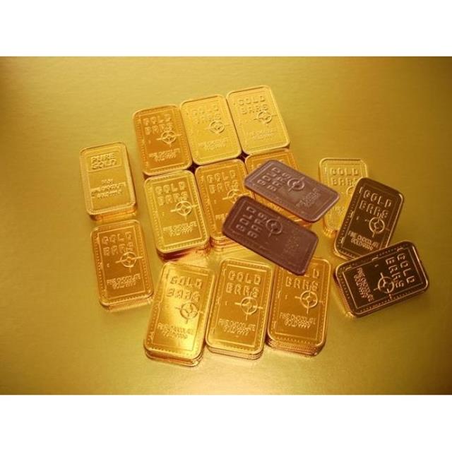 Balení 260 ks. Kvalitní čokoláda ve formě zlatých cihel o rozměrech 50mm x 30mm ve zlaté balení. Máte pocit že se jedná skutečně o malé 10gr zlaté slitky. Tyto malé čokoládové zlaté slitky jsou ideální jako reklamní předměty. Složení: cukr, sušené plnotučné mléko, kakaové máslo, kakaová hmota, sušená syrovátka, emulgátor sójový lecitin, přírodní Vaillin. Obsah kakaa nejméně 28%. Mléko a mléčné složky nejméně 16%. Může obsahovat stopy ořechů. Vyrobeno v Nizozemsku.