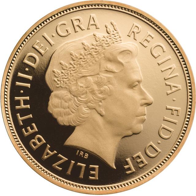 Líc: slavné znázornění Sv. Jiří a drak od Benedetto Pistrucci; Rub: královna Alžběta II |